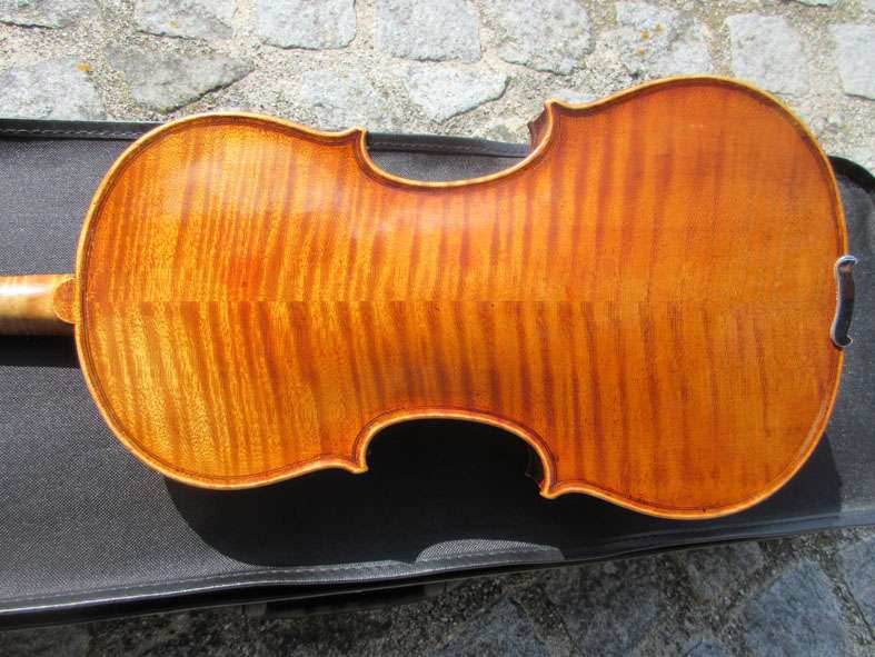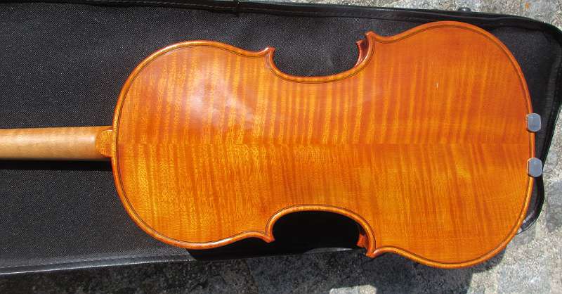 Sehr schön geflammter Ahorn für Hals, Boden und Zarge, Decke Fichte.